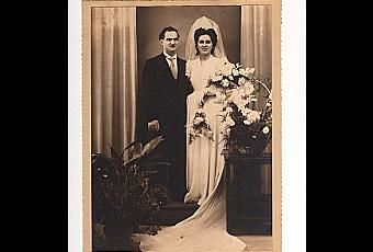 Maman était resplendissante dans sa longue robe blanche, soyeuse et dont la traîne augmentait la grâce du mouvement. Ses cheveux noirs se démarquaient sous un léger voile, magnifiques et satinés, nous faisant oublier le sortir de la guerre. Un joli bouquet de fleurs masquait ses mains que je devine si douces et si fines et sur lesquelles devait scintiller une alliance en or.
