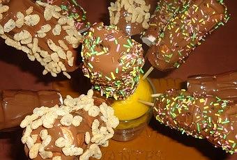 Egoutter le chocolat et mettre des vermicelles ou des rices krispies autour