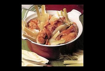- A ébullition, ajouter les fenouils. Arroser avec le jus du citron et laisser mijoter à découvert 45 mn, en retournant les morceaux de lapin de temps en temps. Transvaser dans un plat creux chaud et servir.