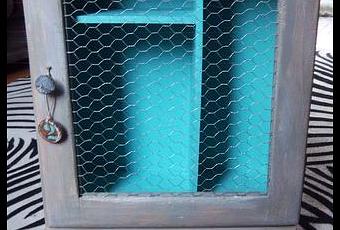 Ancienne armoire à pharmacie, une porte ajourée grillage à poule et un tiroir bas