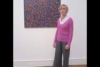 Elle aime se laisser surprendre par son travail. Interrogeant les données tactiles et la sensorialité donnée par la touche, elle est en équilibre entre sa propre volonté et les contingences qu’offre le tableau se laissant guider par la sensation pure. La seule règle qu’elle s’est donnée est le respect du carré qui permet d’éliminer tout ce qui est de l’ordre de la composition. L’enjeu est le travail des unités de carré dans des carrés au profit de l’équivalence de morceaux de couleurs, entre l’unité et la totalité. Le travail se construit autour d’une sorte de conquête du territoire où la part de l’aléatoire est capitale, sorte mise en scène de rencontres de couleurs, des entre deux, pour générer une sensation colorée. C’est une quête constante d’un au-delà de ce qui peut être donné à voir. N’y voir que des carrés est réducteur!