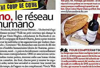 Photos sur Facebook, récits de vies sur Twitter … Un festival d’egos trips, les réseaux sociaux ? Voilà un petit nouveau qui change la donne. Fondé par Chris Hughes, cofondateur de Facebook et ex-directeur de la e-campagne d'Obama, Jumo a pour mission de "connecter les individus et les organisations qui veulent changer le monde." Comment ? En demandant aux inscrits de décrire leurs centres d’intérêts humanitaires (droits de l’homme, protection des animaux, santé …) puis en les informant continuellement des actus des ONG correspondantes. ONG et associations caritatives qui, même toutes petites, trouvent enfin une bonne vitrine pour se faire connaître. Au final, chacun peut y trouver les organisations à aider, en suivre l’actualité et soutenir leur travail (en accordant du temps, de l’argent ou des compétences). Vive le web philantrope !