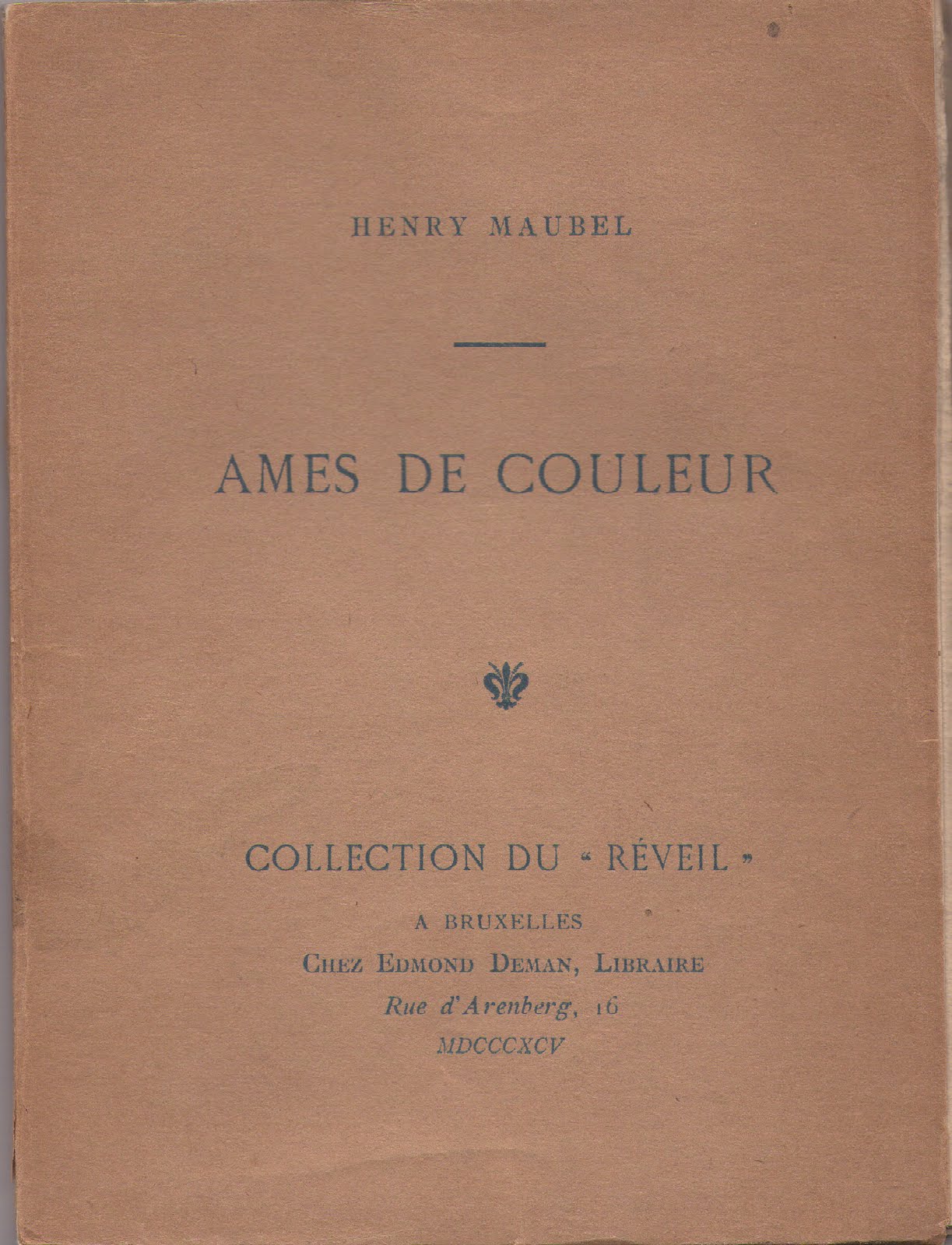 Henry Maubel : Ames de couleur. Collection du "Réveil", Bruxelles, Chez Edmond Deman, 1895, 12,5 x 17 cm, 84 pages. Tirage : 350 exemplaires sur papier vergé français de cuve, 8 exemplaires sur Japon.