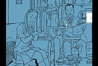 Dessin, histoire, personnages : dès que j'ai eu le manga entre les mains, j'ai été frappé par sa singularité. L'objet lui-même est séduisant. La couverture, avec sa représentation d'une famille modèle, souriante, qui regarde le lecteur comme si elle posait pour un photographe... Le fond bleu sombre, élégant, mais envahissant, donne un premier indice du malaise qui va suivre. Et l'ombre derrière le rideau... Une page de garde en calque donne une tonalité SF que confirme la première page couleur, celle du météore traversant l'espace.