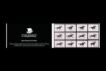 J’ai fait le design graphique de ces cartes d’affaires pour Productions cinématographiques Corsaire dans l’objectif de mettre en valeur les caractéristiques de cette toute nouvelle entreprise. L’idée principale était donc de diffuser le plus simplement possible le message suivant: « Productions cinématographiques Corsaire fait du cinéma. » Le logo du bateau était une contrainte imposée ainsi que la typographie. Voici le concept sélectionné par l’entrepreneur: