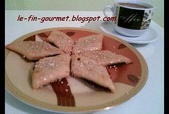 * étalez la pâte sur une surface farinée en très fine couche , mettez un boudin de pâte de datte sur le bord de cette pâte et roulez -la trois fois sur elle même, aplatissez ce dernier boudin à l'aide du rouleau jusqu'à 0.5 cm d'épaisseur , ne mettez pas trop de dattes , faites des motifs à l'aide d'une fourchette et coupez en losanges , piquez avec un cure dents et laissez reposer 30 mn
