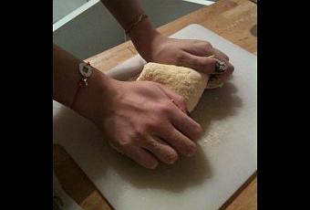 Continuer à pétrir la pâte et rajouter de la farine si besoin, jusqu’à ce qu’elle soit lisse et brillante. En faire une grosse boule et l’emballer d’un sac congélation. Laisser reposer à température ambiante pendant minimum 30 minutes (idéalement 1h).