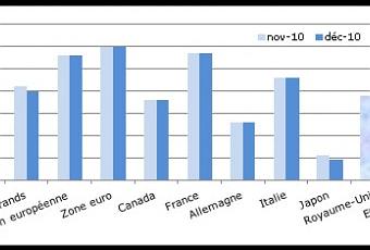 Le taux de chômage de la France est resté inchangé à 9,7% depuis juin 2010, reflétant la stabilité générale du taux de chômage pour l’ensemble de l’Union européenne. L’Allemagne est le seul pays qui enregistre un taux de chômage inférieur à celui de 2007, à 6,6%. Hormis les États-Unis, l’Australie, la Belgique, l’Irlande, le Japon, les Pays-Bas et l’Espagne ont enregistré de légères baisses de leur taux de chômage en décembre, alors que l’Autriche, la République tchèque, le Danemark, la Hongrie, la Corée, le Luxembourg, la Pologne et la Slovénie ont enregistré de légères hausses. Le taux de chômage est resté stable dans les autres pays de l’OCDE.