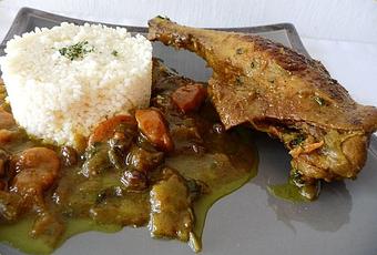 Dans un wok ou dans un plat à tajine faire revenir sur feu vif l’oignon avec l’huile d’olive, ajouter les cuisses de canard et les faire griller des deux côtés. Ajouter les carottes, le potiron, les raisins secs, le miel et toutes les épices. Diluer le bouillon dans l’eau et couvrir. Saler, poivrer. Et laisser mijoter 1h30 à 2h à petit bouillon.