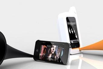 Arkwhat vient de concevoir ce superbe haut-parleur analogique acoustique pour iPhone. (disponible en noir, blanc, violet, vert, rose et orange pour 13$)