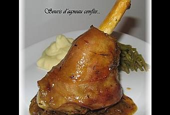 Pour 4 personnes, il vous faut: 4 souris d'agneau 1 gros oignon 1 cuillère à soupe de miel 1 cuillère à soupe de thym 1 cuillère à soupe de romarin 1/2 verre d'eau huile d'olive