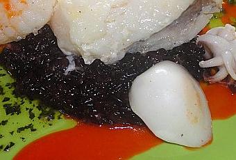 Inspirée par d'Albin Hibon j’ai juste changé le risotto à l’encre de seiche par le riz noir !