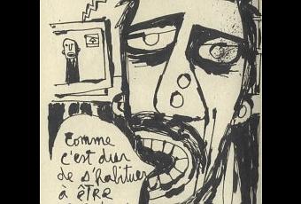 Ses dessins écrits en trois langues (anglais, français, arabe) surprennent par leur simplicité et leur brutalité.