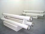 Photos courtoisie galerie Frédéric Giroux. [Pascal Broccolichi, "Sonotubes 2", 2008, 6 tubes de carton fibré, caissons en médium, ressorts en inox, équipement audio ( 2 ampli+2 lecteurs CD, 2 mixettes), 4 vibreurs basses fréquences + 4 hauts parleurs coaxiaux, 300 x 70 cm (chaque), © Pascal Broccolichi, courtesy galerie Frédéric Giroux] et [Pascal Broccolichi, Sans titre n° inv-0704, 2007, tirage lambda contrecollé sur aluminium et encadré, 120 x 180 cm, © Pascal Broccolichi, courtesy galerie Frédéric Giroux]