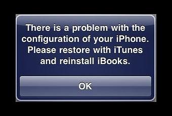 Bon nombre d’utilisateurs s’en sont sans doute rendu compte avec leurs appareils pommés : quand ils démarraient iBooks sous iOS 4.2.1 jailbreaké, ce message apparaissait :