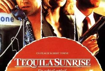 " Tequila Sunrise est un film américain réalisé par Robert Towne en 1988 au cinéma. Le scénario : "Dale Mckussic, ancien dealer de drogue, veut éviter les problèmes. Son ancien camarade, Nick Frescia est devenu flic, et se donne pour mission de le coincer. Entre Nick et Mac, une jolie femme, Jo Ann, propriétaire d'un restaurant italien... et pour corser les affaires, un dealer mexicain, Carlos, qui ne fait pas dans la dentelle..." Avec Mel Gibson, Michelle Pfeiffer, Kurt Russell ..