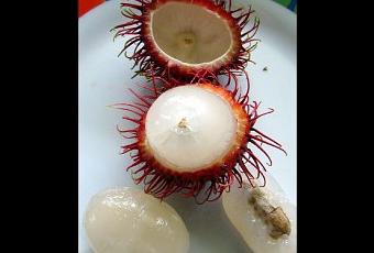 Tous les jours, L. revient de chez sa maman avec deux sacs pleins de ramboutans bien rouges. Autour de la table, le concours démarre. Qui aura le plus gros tas de demi-bogues vides et de noyaux devant lui. La gagnante est de loin, de très loin S. Toute la famille de L. a capitulé devant les ramboutans pour cause de maux de ventre… sauf S. qui peut manger des kilos et des kilos sans aucune alerte !