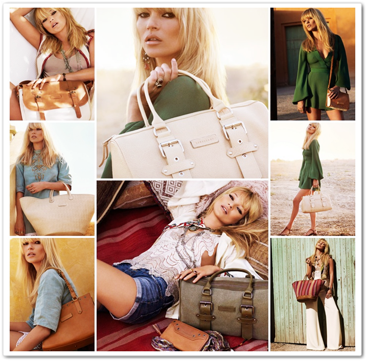 Une collection aux accents rétro ethniques et chics mettant en valeur deux couleurs intemporelles et estivales : le beige et le camel. Le photographe anglais Alasdair McLellan signe cette campagne pub 3ème collaboration entre Kate Moss et Longchamp.