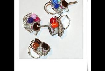 Bijoux Sucrés vous présentais il y a quelque semaines la Bague Chocolat gourmand Macarons. Voici ses petites sœurs bientôt en vente sur les sites de Kakili. C’est une déclinaison de 3 nouvelles bagues, la première avec ses 3 macarons bleus et son chocolat gourmand sur le même modèle que la rose. La deuxième et la troisième bague ont 2 macarons orange et cerise pour la première et chocolat et caramel pour la deuxième. Chaque ont une petite tasse vintage de chocolat et une petite cuillère. Très chic vous ne trouvez pas ?