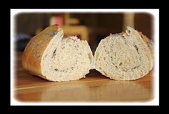 À la fin du programme, sortir le pâton de la cuve et l'étaler en forme de rectangle. Saupoudrer de graînes de pavots et rouler le pâton le plus serré possible comme
