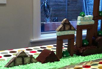Un enfant a reçu pour son anniversaire un gâteau avec la particularité qu’il est entièrement inspiré du célèbre jeux Angry Bird et qu’il est en plus de cela jouable ( une fois ).