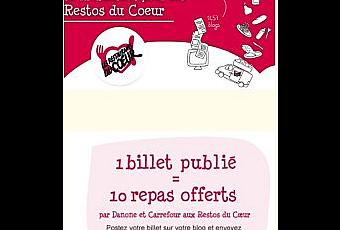 Pour tout les blogueurs, il est possible de soutenirs les Restos du Coeur en publiant ce billet. Ainsi, pour chaque billet publié sur les Restos du Coeur, Danone et Carrefour s'engagent à offrir 10 Repas aux Restos du Coeur.