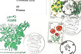 To note that the FDC cancellation does not include the theme ("flowers") of this series but only the city of issue (Tlemcen) and the words "Premier Jour" in French and Arabic...