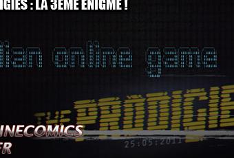 Pour ce qui est de la 3ème énigme, vous voilà envoyé sur la toute nouvelle page facebook de The Prodigies, où vous devrez passer un test à base de questions simples et de calculs dans un écran animé, et avec du temps limité ! (lisez bien les questions avant de répondre)