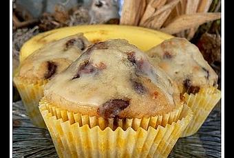 Beurrer des moules à muffins ou les tapisser de caissettes en papier. Dans un grand bol, mêler la farine, la poudre à pâte, le bicarbonate et les pépites de chocolat. Dans un bol moyen, battre le lait, les œufs, le beurre fondu, le sucre et le zeste. Incorporer la purée de bananes et bien mélanger. Verser sur les ingrédients secs et mélanger juste assez pour humecter. Remplir les moules à muffins jusqu'au bord et cuire au four 20 à 25 minutes, ou jusqu'à ce que le dessus des muffins soit ferme au toucher.
