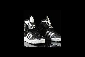 La Adidas Metro Attitude Logo pour femmes affiche une base en cuir noir contrasté par des carreaux métalliques et par du blanc. Les sneakers adoptent un style à la Jeremy Scott avec leur languette oversize.