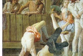 Sur la Piazzetta et le quai des Esclavons, tout le jour et une bonne partie de la nuit, le spectacle ne s'arrête guère. A côté du Palais gouvernemental, baladins, astrologues, charlatans, montreurs de marionnettes dressent leurs tréteaux. Les uns exhibent des serpents, les autres font des tours de passe-passe, certains racontent des histoires corsées, des musiciens jouent de la harpe ou pincent les cordes d'une guitare, des masques affreux sèment l'épouvante, des gaudrioles déchaînent l'hilarité. Et quel rapprochement symbolique : là, en face, la classe dirigeante, tenue sous peine d'amende de se livrer, dimanches et jours de fêtes compris à l'ingrat examen des affaires de l'Etat, ici, sur la place, le peuple goûtant toutes les joies du carnaval.