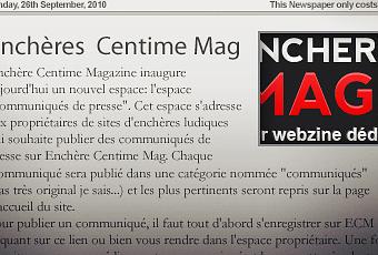 Enchère Centime Magazine inaugure aujourd’hui un nouvel espace: l’espace « communiqués de presse« .