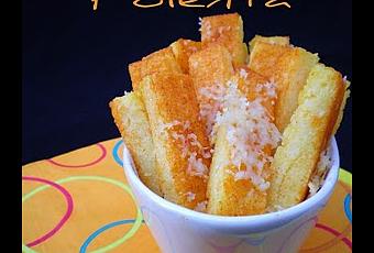 Je voulais écoulé mon stock de polenta et je suis tombée sur cette recette sur le blog d'Hélène. Je ne connaissais pas du tout et suis contente de ma découverte. C'est vraie que ça n'a rien à voir avec des frites c'est un peu sec, il vaut mieux l'accompagner d'un plat en sauce. La prochaine fois je mettrais le parmesan à l'intérieur.