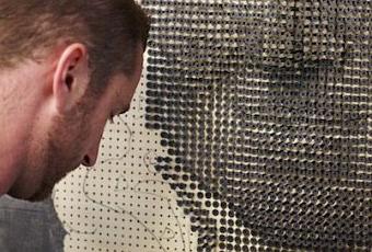 Superbe travail d’Andrew Myers, un artiste sculpteur Californien qui réalise des oeuvres et des portraits 3D grâce à plus de 10 000 trous qui sont après visés un par un à la main.