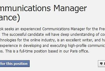 Et bien une fois de plus Facebook l’a fait en vous proposant de vous embaucher comme responsable de la communication pour la France.