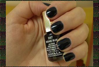 Aujourd’hui donc le « mosaic blue » qui est un bleu noir trop trop joli. Pour tout dire j’ai pas arrêté de regarder mes ongles…