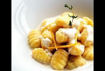 Finir la sauce en ajouter la crème pour sauce, réchauffer et napper les gnocchis avant service. Il ne reste plus qu’à déguster.