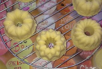 Ils sont pas jolis mes savons ?Par contre j'ai eu un petit peu de mal à sortir les "kouglofs" de leur moule en silicone. Ils sont encore un peu mous. Ne parvenant pas à sortir la rose et le petit "palet", trop mous, je les ferai patienter un peu. Mais vu la sécheresse de notre appartement (l'hygrométrie variant de 30 à 40 %...) je pense que ça devrait sécher assez vite... A suivre...