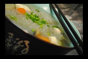 Sa note dukanienne: Au moment du dressage des bols, ciseler sur le dessus de votre préparation un peu de ciboulette thaïlandaise.