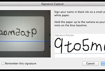 Pas besoin d’un stylet, il suffira de mettre votre signature avec un stylo noir sur une feuille de papier et de placer cette dernière devant la webcam intégrée de votre Mac pour que le logiciel scan et récupére votre signature.