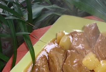 ajouter la moutarde, et le jus de la boite d'ananas,la tranche de pain d'épice