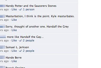 Facebook permet de connaitre la créativité de ses « amis ». Un exemple avec Kyle, qui vient de changer son statut pour « in a relationship ». Je vous préviens, c’est en anglais, plein de jeux de mots, mais ça vaut le coup d’œil !