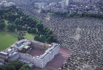 Buckingham Palace, cerné par les bidonvilles des réfugiés climatiques.