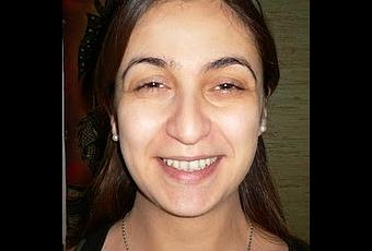 J'ai utilisé la palette Naked d'Urban Decay, l'Aqua Cream yellow de Make Up for Ever, et le pigment Golden Yellow de MAC. Chahinez a le creux de la paupière très très haut, il a donc fallu en créer un plus bas pour donner plus de dimension au regard.