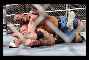John Cena est le premier a sortir de la cage écrasant au passage The Miz qui bloquait la sortie.