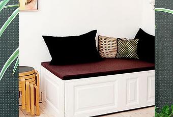 Jolie solution astucieuse si vous manquez de place ou comme lit supplémentaire pour les invités. Ouvrez le banc et déroulez le matelas futon. Nice and clever solution for compact living or as an extra guest bed. Open the bench and roll out the futon mattress. Photos Sif Meincke/Femina DK