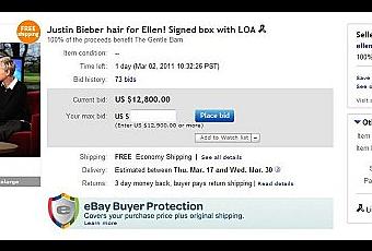 Le chanteur Justin Bieber a décidé de faire une bonne action en offrant une mèche de cheveux à une association caritative afin de recolleter des fonds qui profiteront au secours animal. Une mèche de cheveux de Justin Bieber est en vente sur le site d'enchères Ebay, elle est actuellement à 12800 $, environ 9250 € !