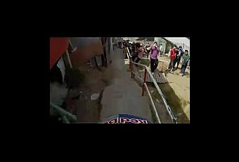 Lors d'une compétition de VTT à Valparaiso au Chili, un prodige du VTT effectue à toute vitesse une magnifique descente dans des passages étroits et avec de nombreux