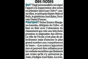 Vous trouverez ci-après le témoignage d’un membre de SOS Éducation réagissant à l’action que nous avons menée pour maintenir les notes à l’école. Certains en effet – et non des moindres, mais des personnalités comme Axel Kahn et Marcel Ruffo – ont proposé de supprimer tout simplement les notes à l’école primaire…Rappelez-vous, être noté ne vous aurait-il pas traumatisé dans votre enfance ?