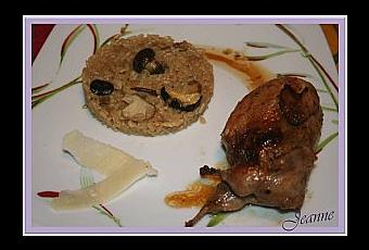 De bonnes petites cailles gourmandes accompagnées d'un risotto bien crémeux parfumé au thym et aux petits